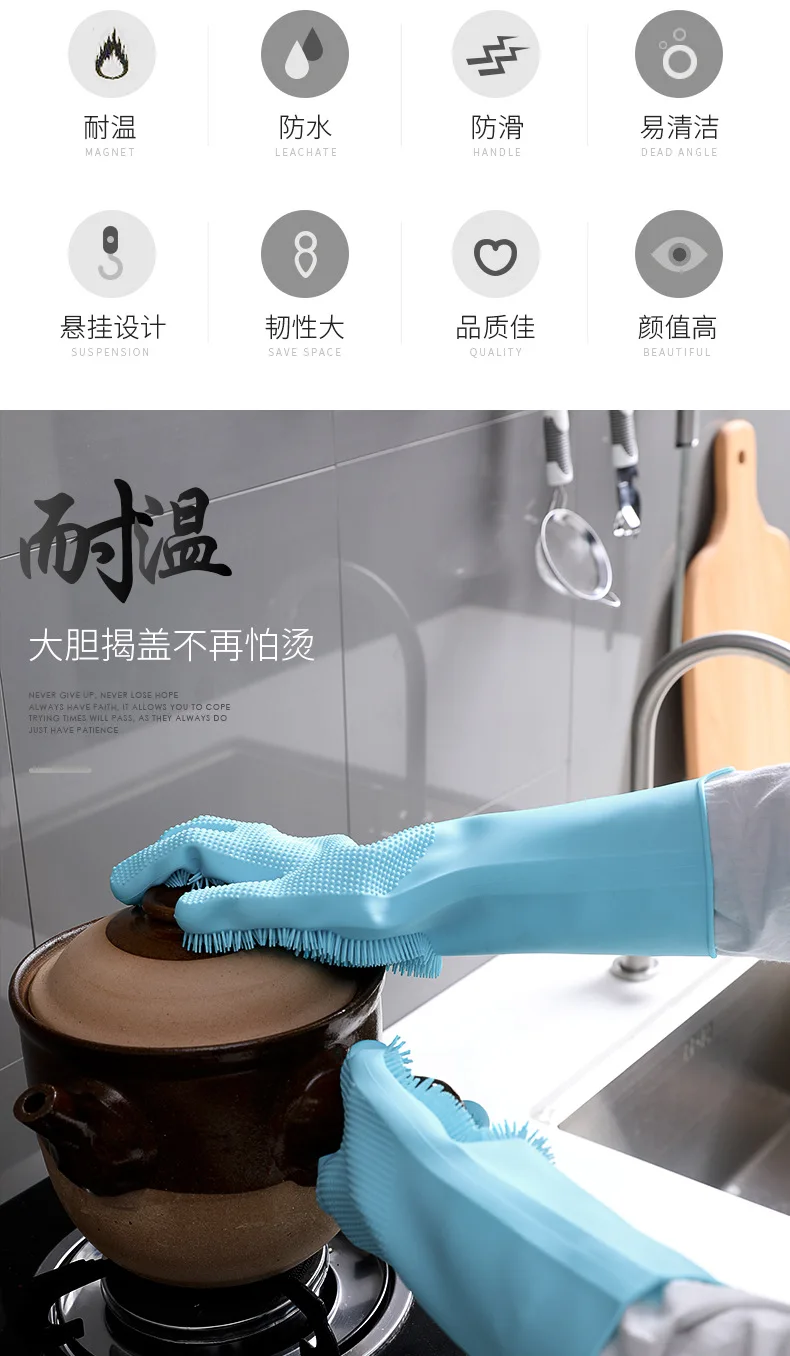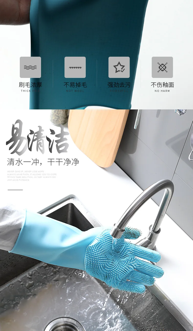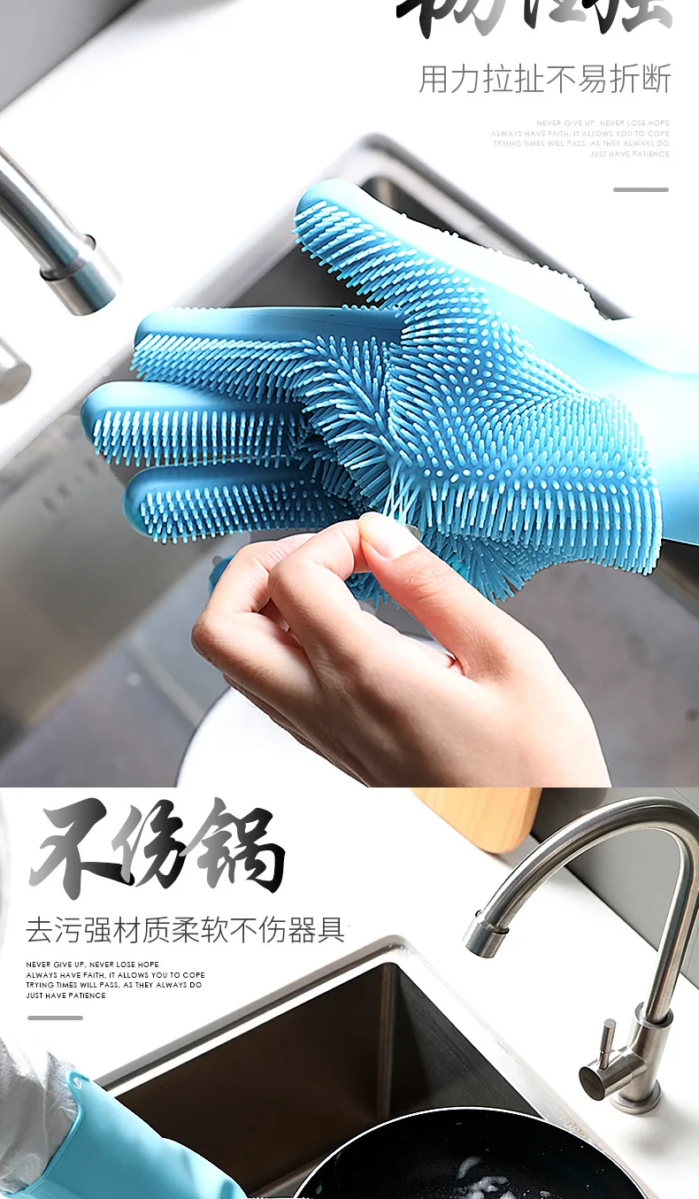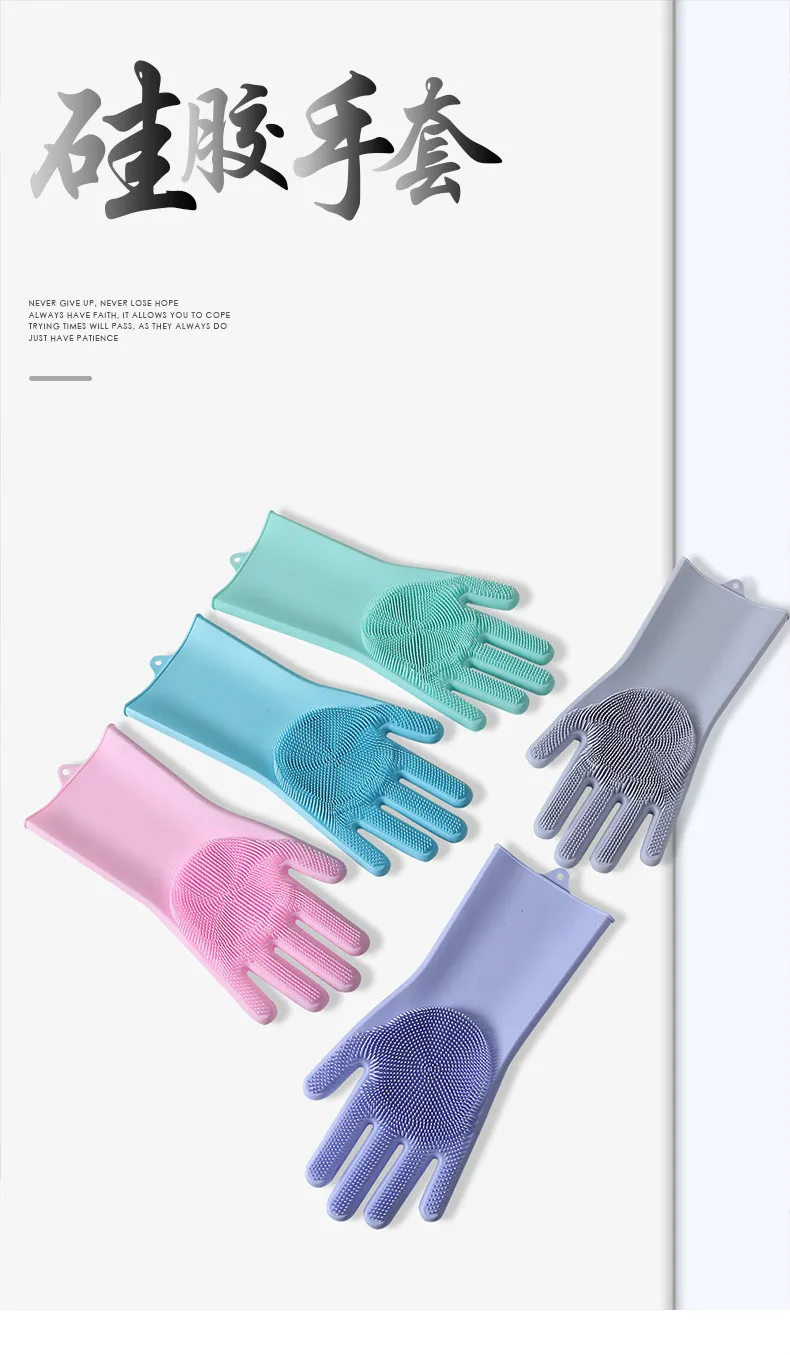 1Pair Dishwashing Cleaning Gloves Magic Silicone Rubber Dish Washing Glove for Household Scrubber Kitchen Clean Tool Scrub