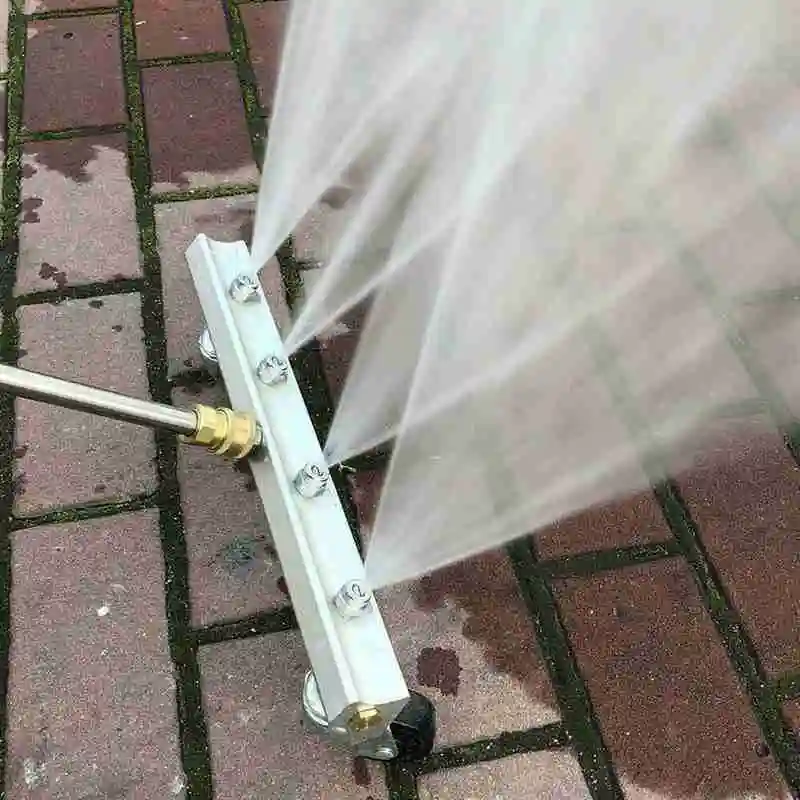 Easily connects to many pressure washers. 4 Nozzles & 2 Swivel Caster Wheels. Rolls under and around for complete cleaning.